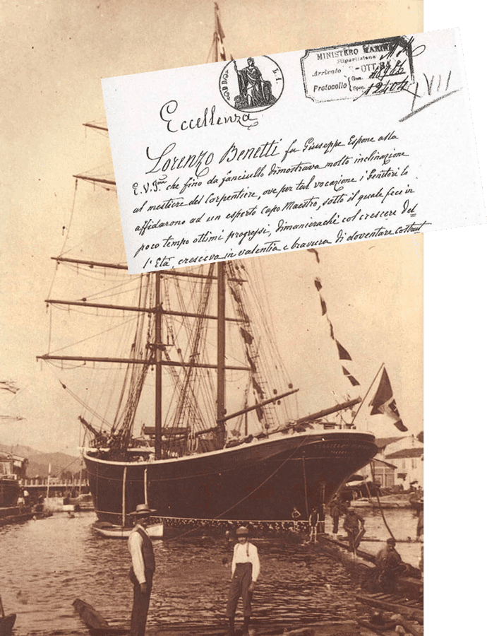 In over 30 years Lorenzo Benetti launches more than 30 vessels, including 5 schooners, 3 tartanes, 13 brigantine-schooners, 8 “navicelli” boats, and 3 cutters.