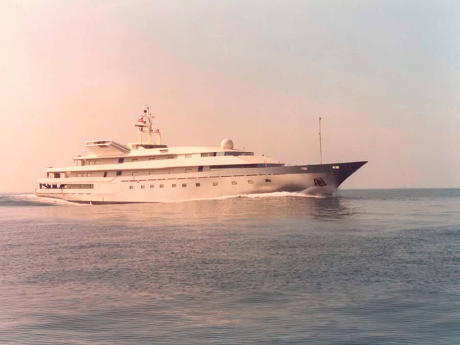 With a length of 86 meters, Nabila is the first and largest gigayacht ever built at the time for Saudi businessman Adnan Khashoggi.